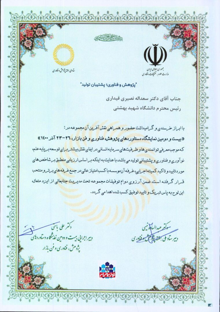 پاویون مذکور همچون سالهاى قبل به عنوان غرفه‌ی برتر این دوره که بيست و دومين دوره‌ی برگزاری دستاوردهاى پژوهش، فناورى و فن بازار است، انتخاب شد.