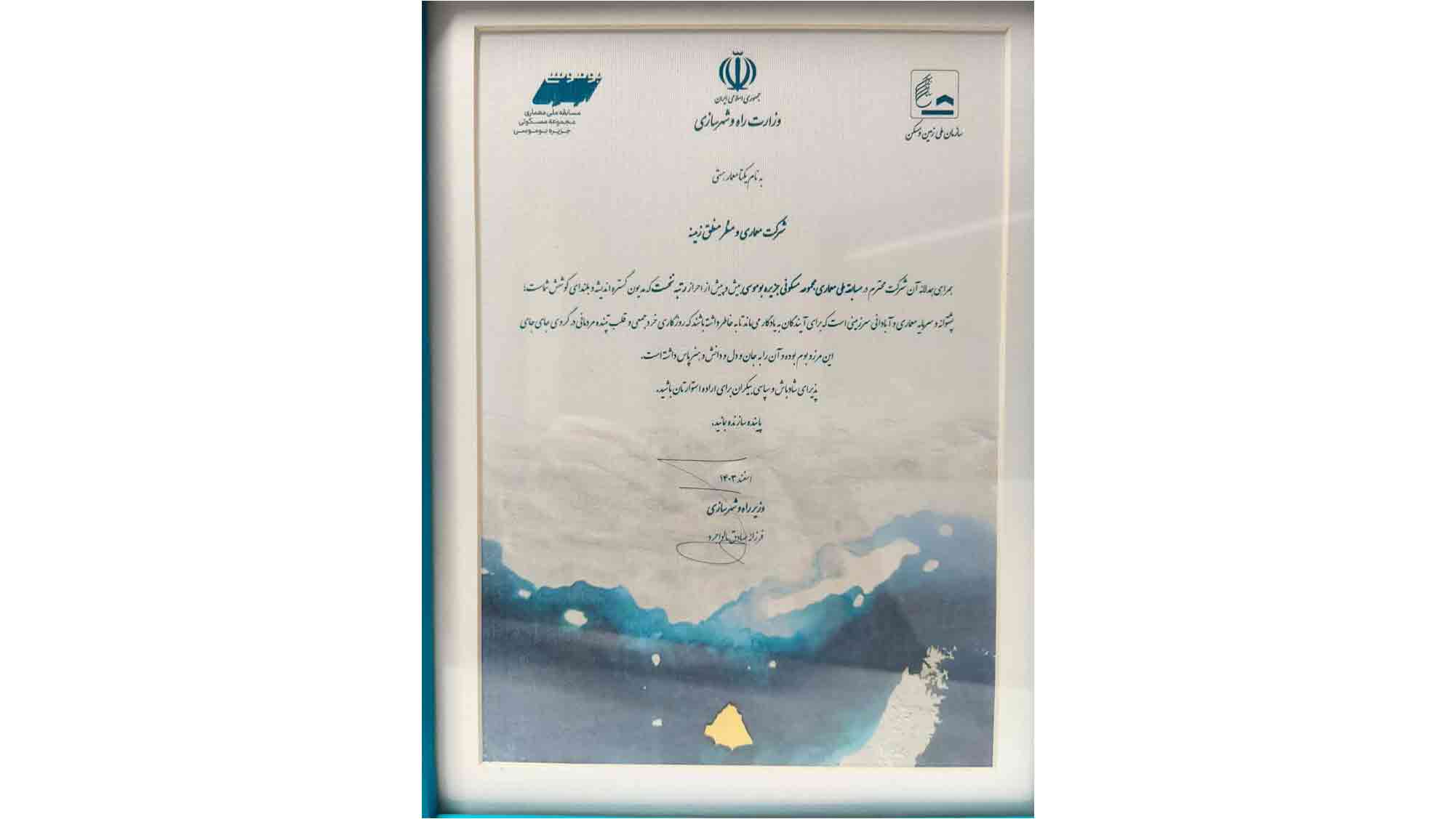 مسابقه ملی معماری خانه در خلیج فارس، با موضوع طراحی مجموعه مسکونی در جزیره بوموسی در بازه زمانی دی تا اسفند سال 1403 توسط وزارت راه و شهرسازی و دو نهاد دیگر برگزار شد. آقای مهندس بابک مطلب نژاد، مدیر و خانم مهندس مروارید قاسمی مشاور مسابقه بودند و خانم دکتر زهرا اهری و آقای دکتر محمدرضا حافظی از اساتید دانشکده معماری و شهرسازی به همراه آقای مهندس محمدرضا حائری، آقای مهندس کورش رفیعی، آقای دکتر حامد مظاهریان و خانم دکتر آزاده شاهچراغی (داور علی البدل) داوران این مسابقه بودند.
