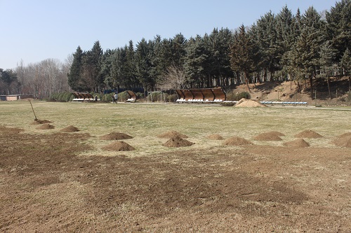 مهیاسازی زمین چمن فوتبال پردیس فنی و مهندسی شهید عباسپور
