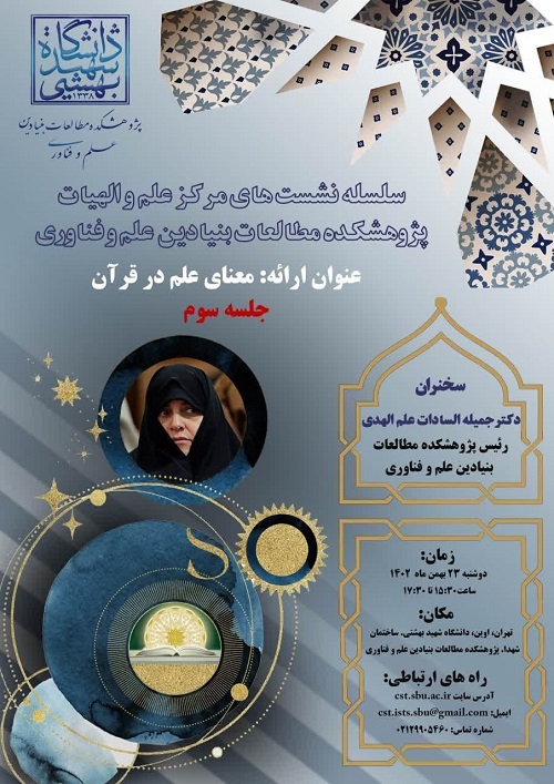 سومین نشست «معنای علم در قرآن »، دوشنبه 23 بهمن 1402 برگزار می‌شود.