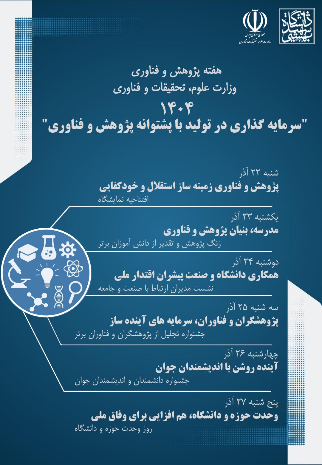 معاونت پژوهشی و فناوری دانشگاه شهید بهشتی برگزار می کند: