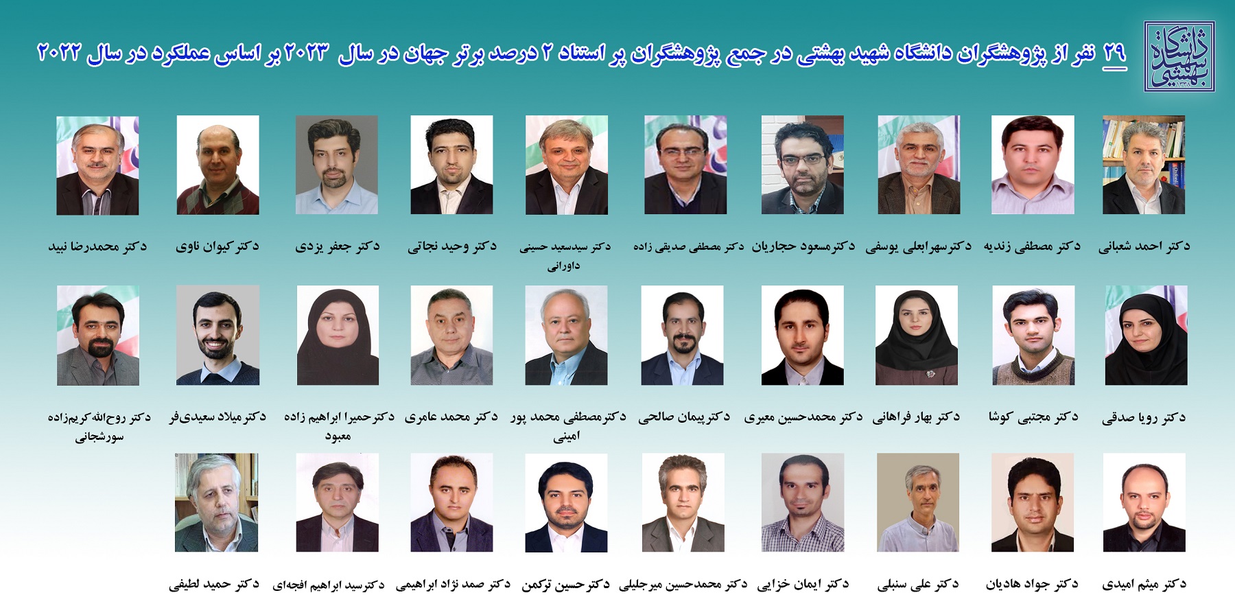 انتخاب 29 عضو هیاتعلمی دانشگاه در فهرست ۲ درصد دانشمندان برتر جهان در سال 2023 و 10 عضو هیاتعلمی در فهرست دانشمندان دو درصد برتر 2023 بر اساس کل دوره